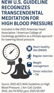 The American Heart Association and American College of Cardiology have just updated their 2025 High Blood Pressure Guideline — and they recognize the Transcendental Meditation (TM) technique as an evidence-based method for lowering blood pressure.